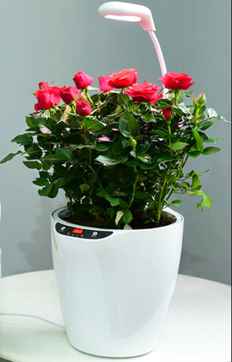 Интеллектуальный цветочный горшок с лампой полного спектра и автополивом.